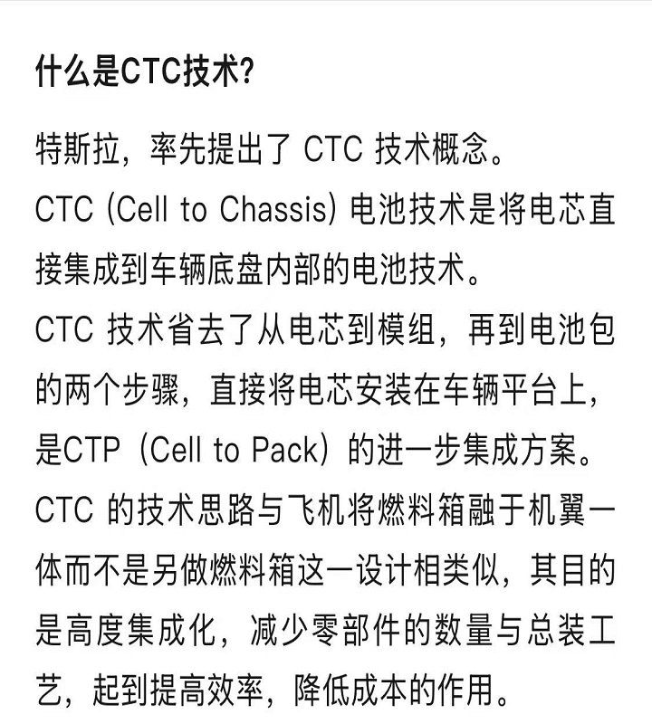 CTC 電池底盤一體化技術